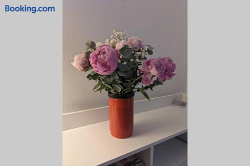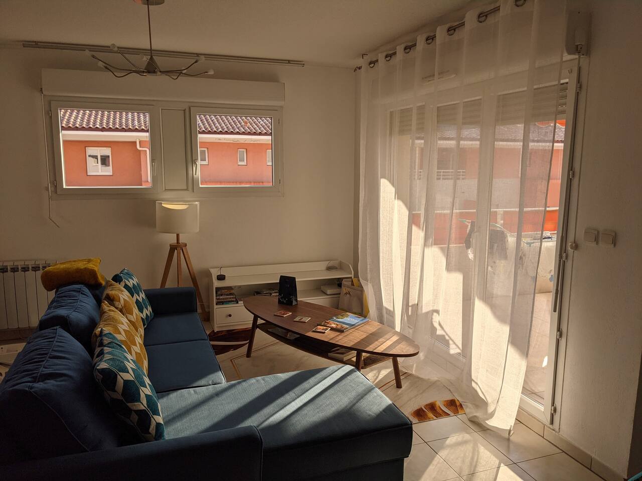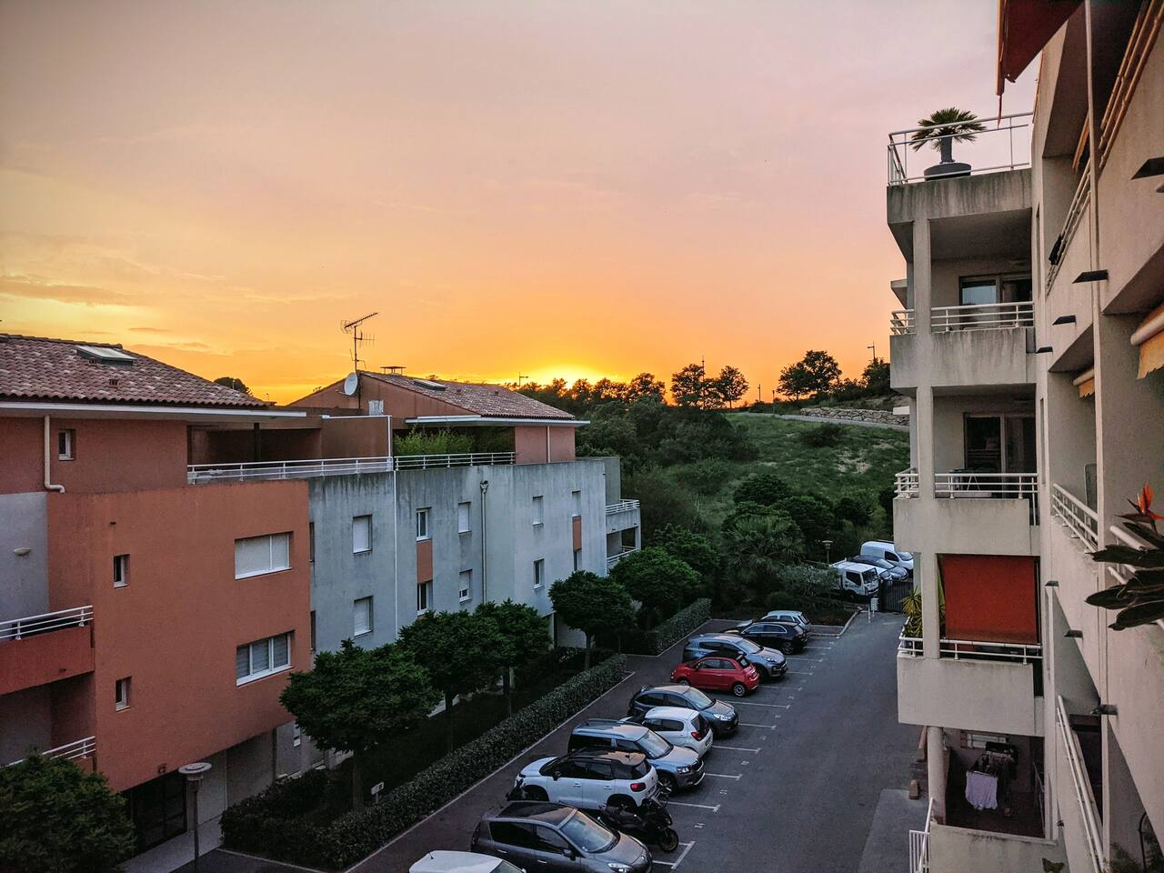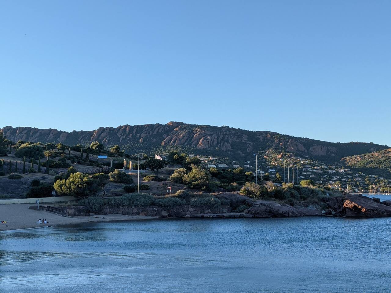 On the hills of St Raphaël, 20 min walking distance of the city center. Quiet and safe neighbourhood. Apartment 80m2, large balcony of 12m2, 2 bedrooms, living room with open kitchen. The apartment is located on the 3rd floor with elevator, in a secured building. Features a garage + free parking on street. Test!!!